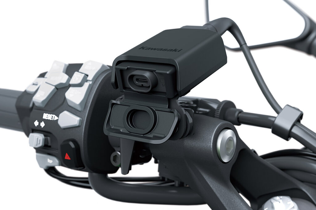 メーターは今までと同じ5インチのフルカラー液晶ですが、NINJA1000 SXとはメーター内表示が 若干変わった? ドライブレコーダーの取り付け位置は、カウル左側上面のミラー横に専用ステーを出して取り付けて いますね カウルの上に付けてる人って、あまり見ないのでちょっと新鮮 リアカメラは、専用ナンバープレート取付ステーの上にちょこんと乗っかっています 今月行われる、東京モーターサイクルショーでも展示されるみたいなので実車を早く見てみたいですね