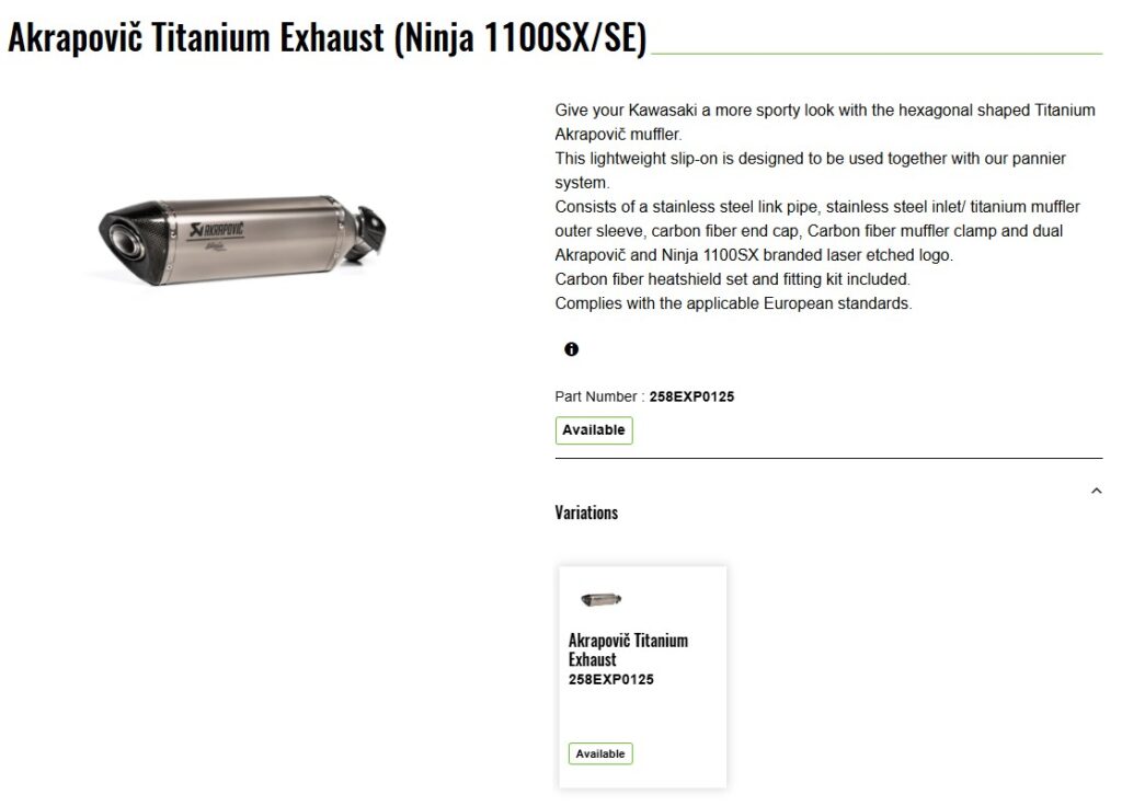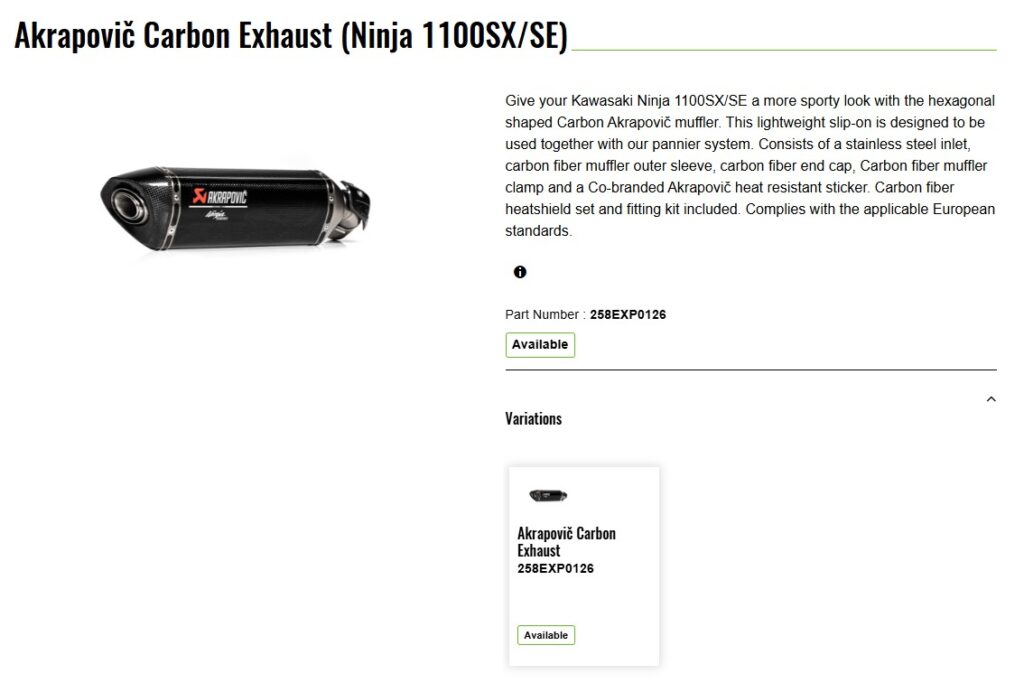 以前から欧州カワサキでは、ほとんどの車種でアクラボのスリップオンマフラーがカーボンと