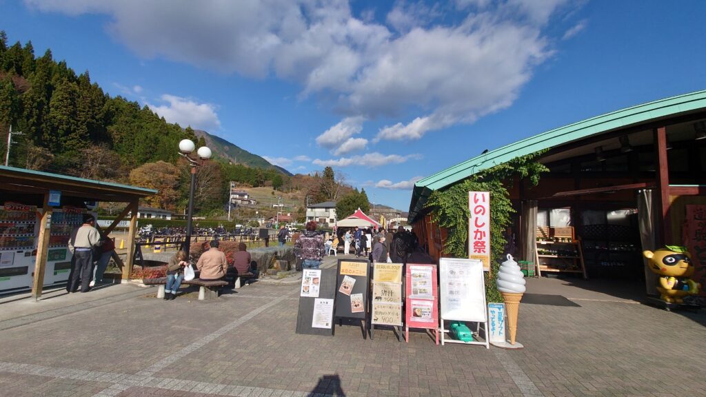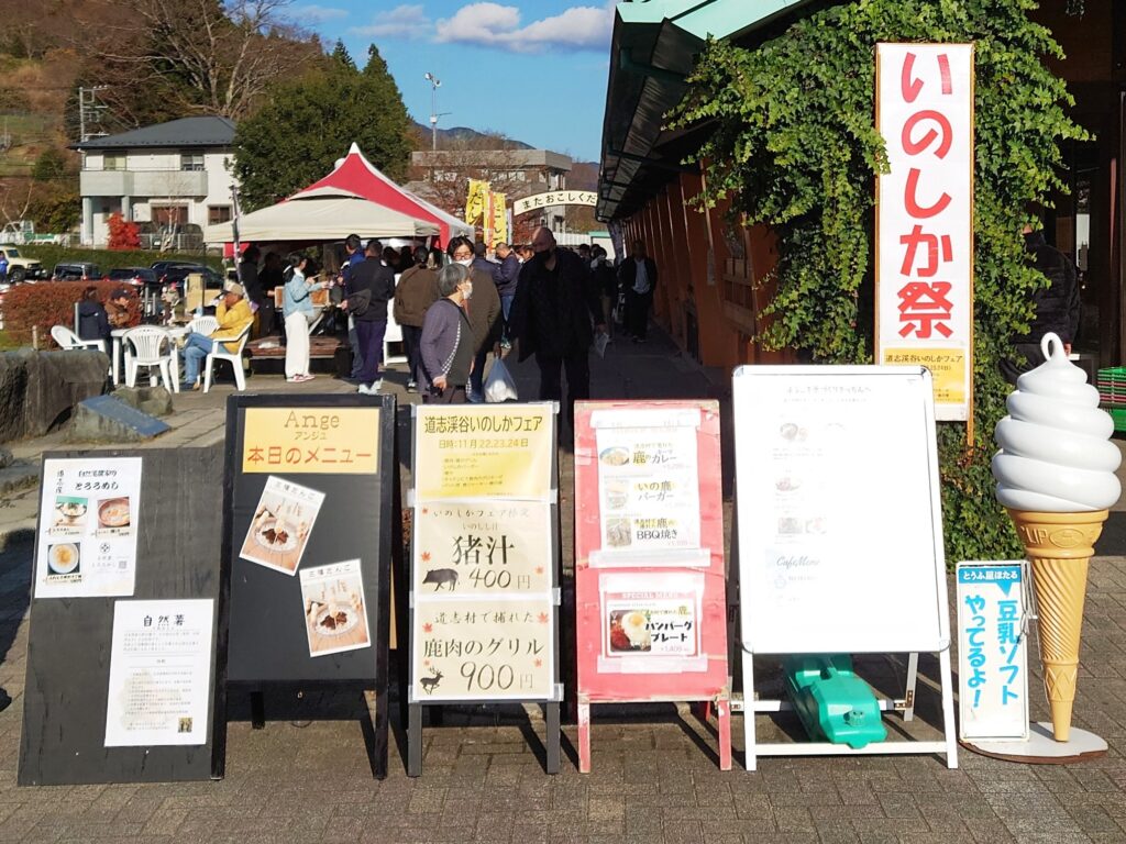 で、お昼でも食べようかなと思って看板を見ると「いのしか祭」と書いてあります