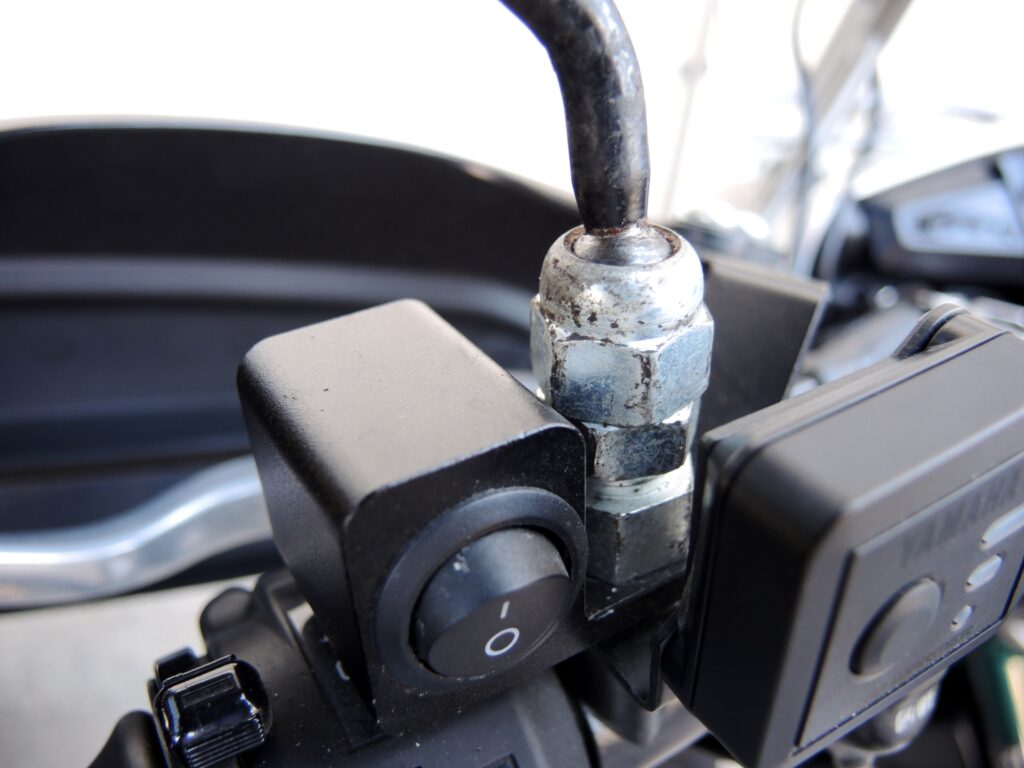 先日、セローで名栗湖までプチツーに行った際、左のミラーがナットをいくら締め付けても