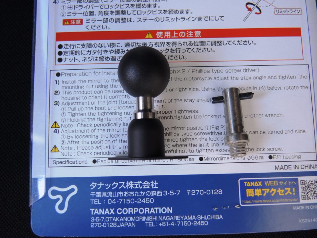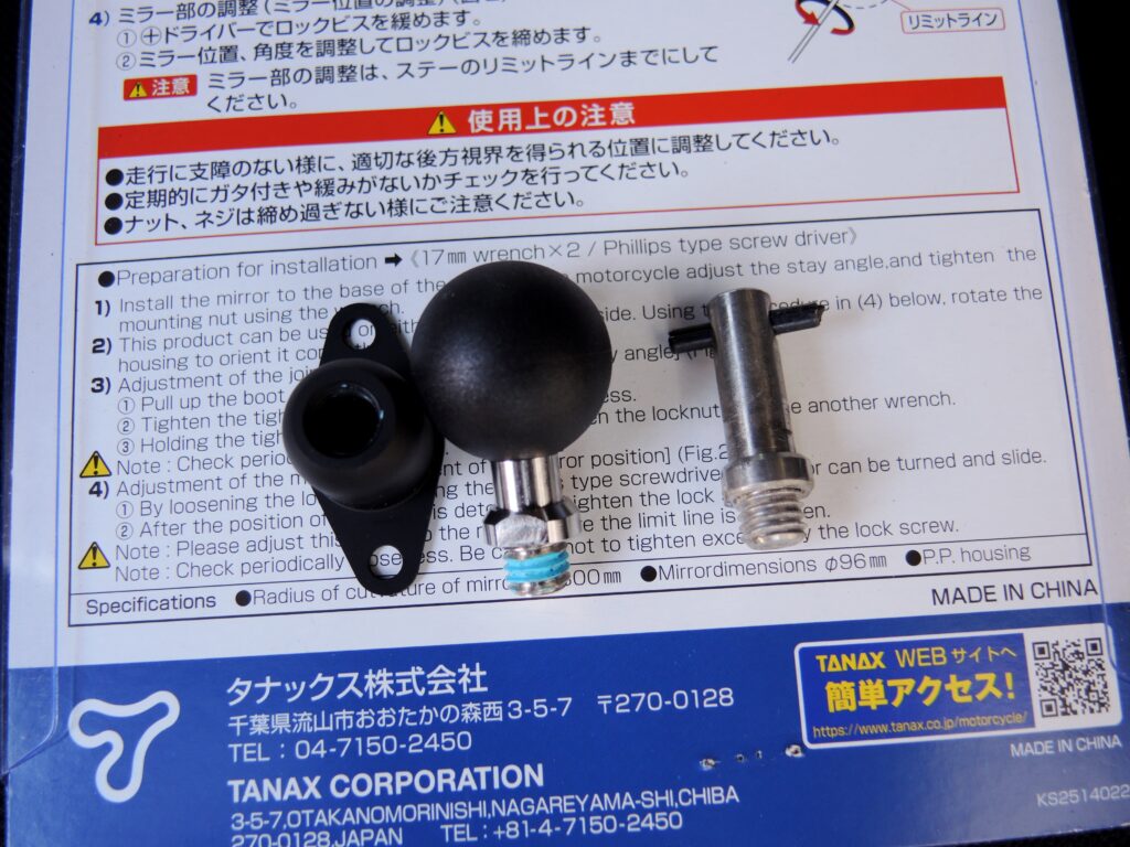 タナックスのナポレオンラジカルミラーは、安い割に良く出来ていて衝撃にも強いんです