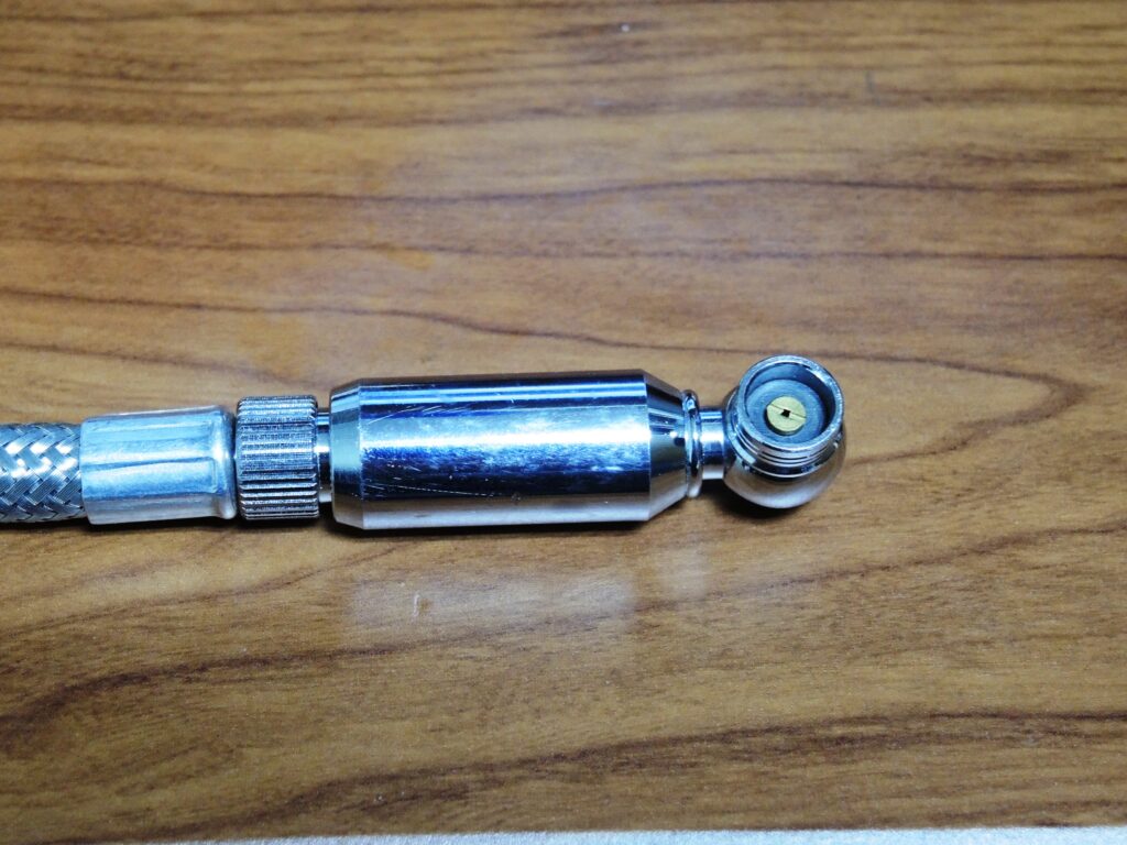 というのもゲージに付いているチャックが、90度下向きなので真上から押さえないとエア漏れして