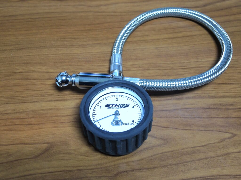 これだと、400kPaまで計測出来るので、NINJAや車でも使えます(NINJAは F:250kPa R:290kPa)