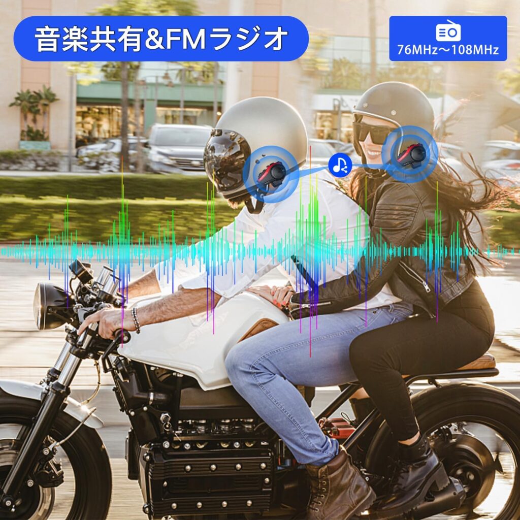 Amison バイクインカム 最大10人同時通話 最大通話距離2000m Bluetooth5.0 FMラジオ付 (楽天)