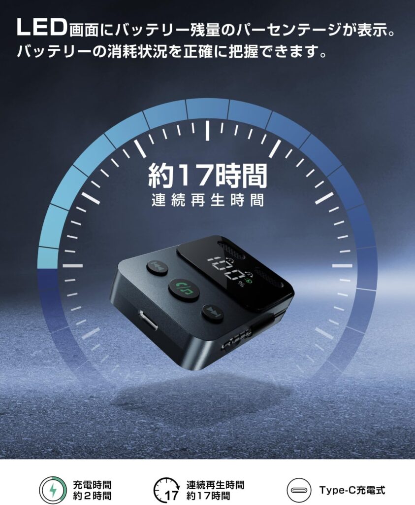 以前から使っていた格安のBluetoothのトランスミッターは、小さくて良いのですが、持続時間が
