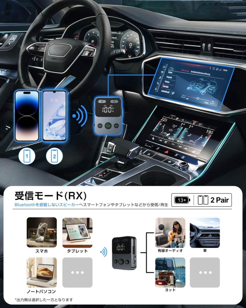 Ewin Bluetooth 5.3 トランスミッター & レシーバー 3.5mm 2台同時接続 17時間再生 (Amazon)