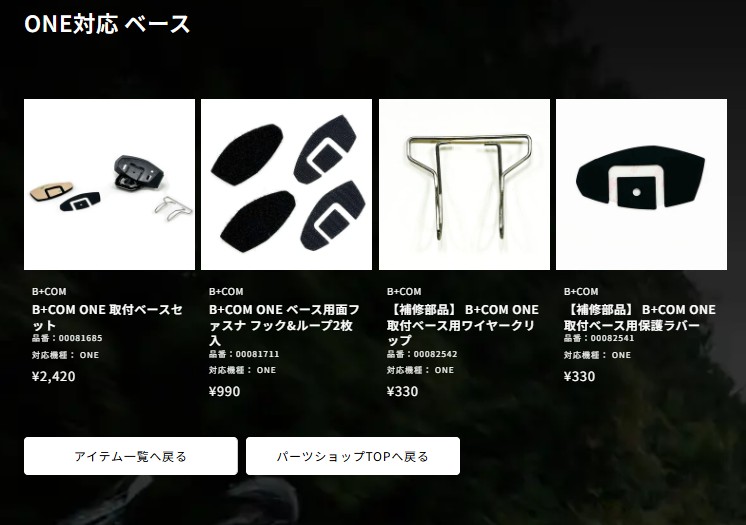 パーツショップを見てみると機種毎に各種パーツが販売されていました
