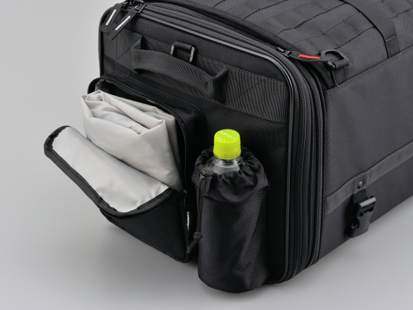 ただし、ソフトな素材なので長時間運転していると、中の荷物が微妙に荷崩れしてくるんですよ