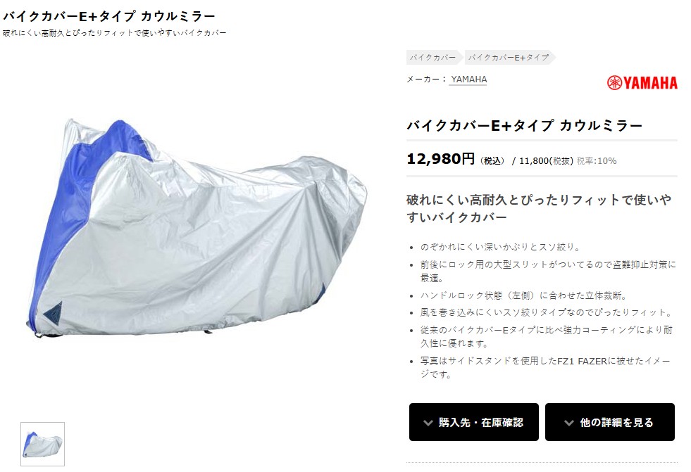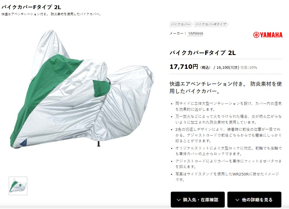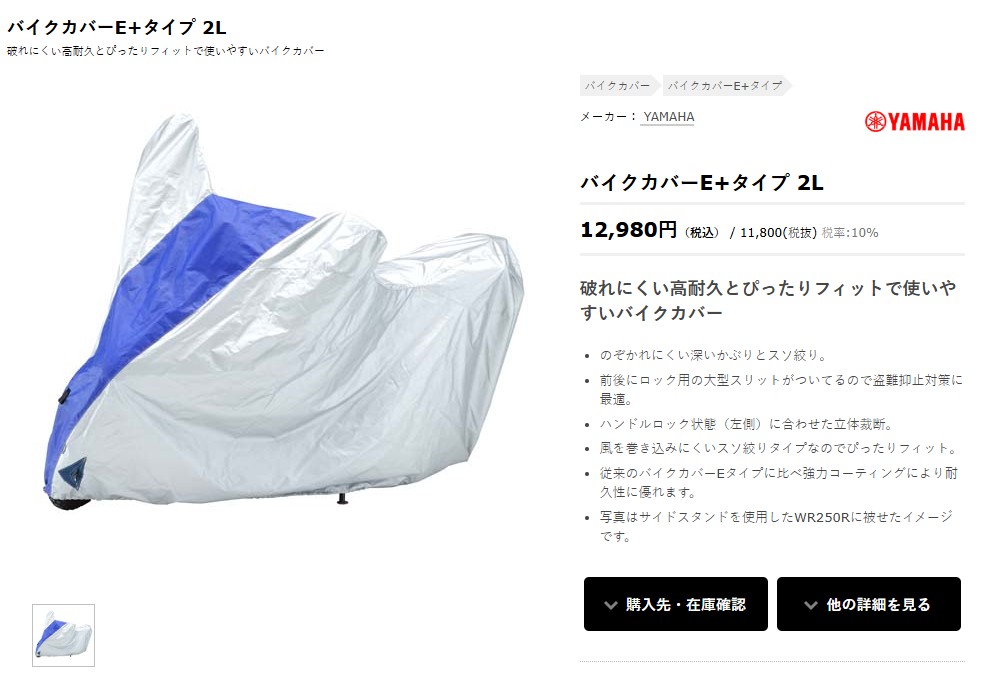 セロー250を購入した際、ヤマハ純正が安心でしょという事で、ワイズギアのバイクカバー